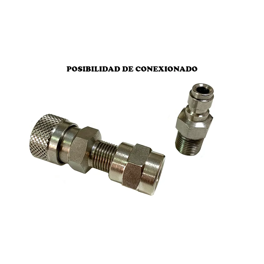 Para poder acoplar diferentes boquillas o latiguillos para la carga de tu carabina PCP.