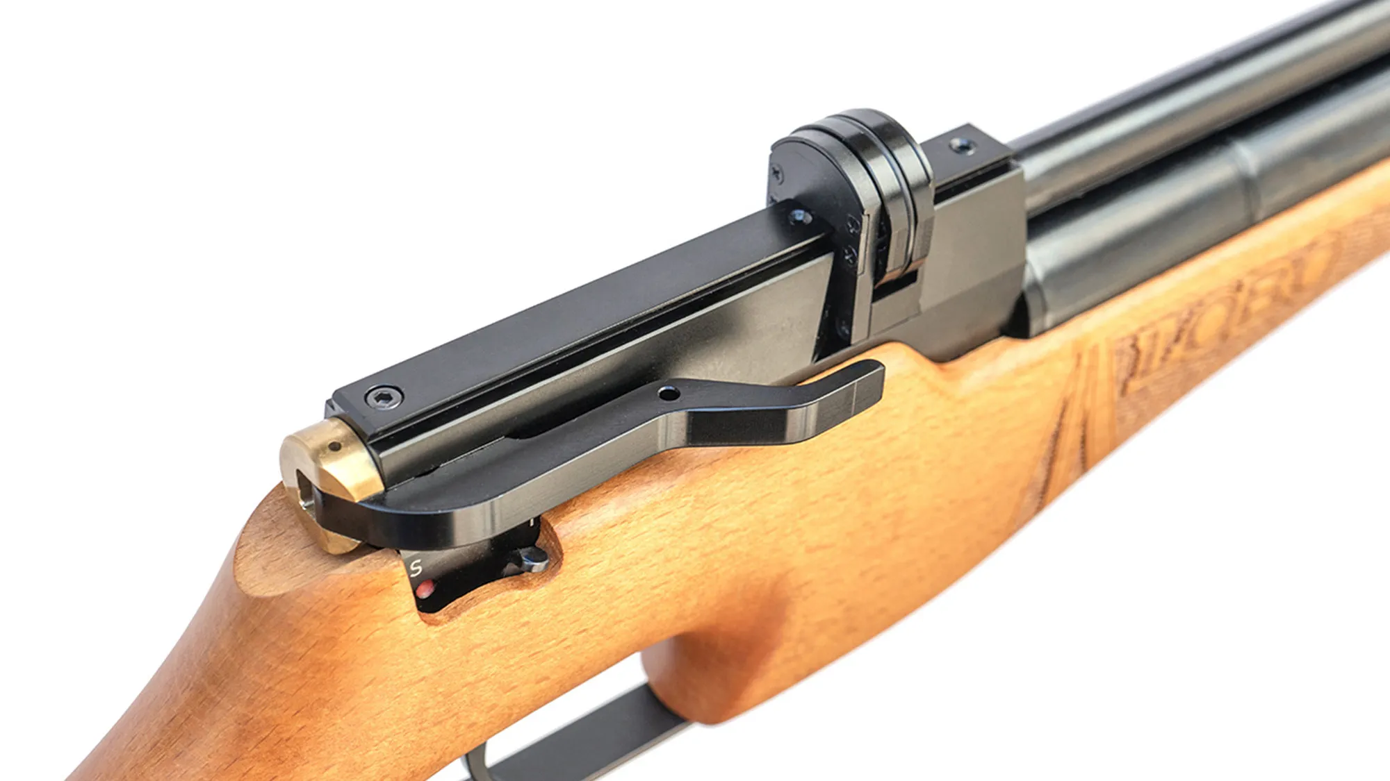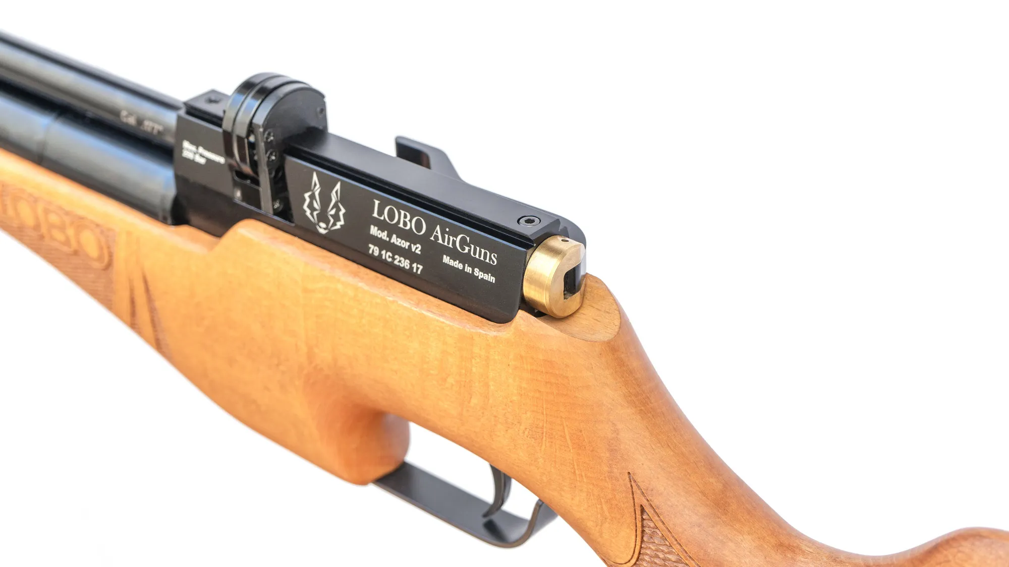 Diseñado y fabricado íntegramente en España. El rifle Azor goza de una culata ergonómica, con un diseño clásico que se funden con unas líneas modernas, una madera de haya tintada en color caoba hacen de este rifle PCP un bella y precisa arma.