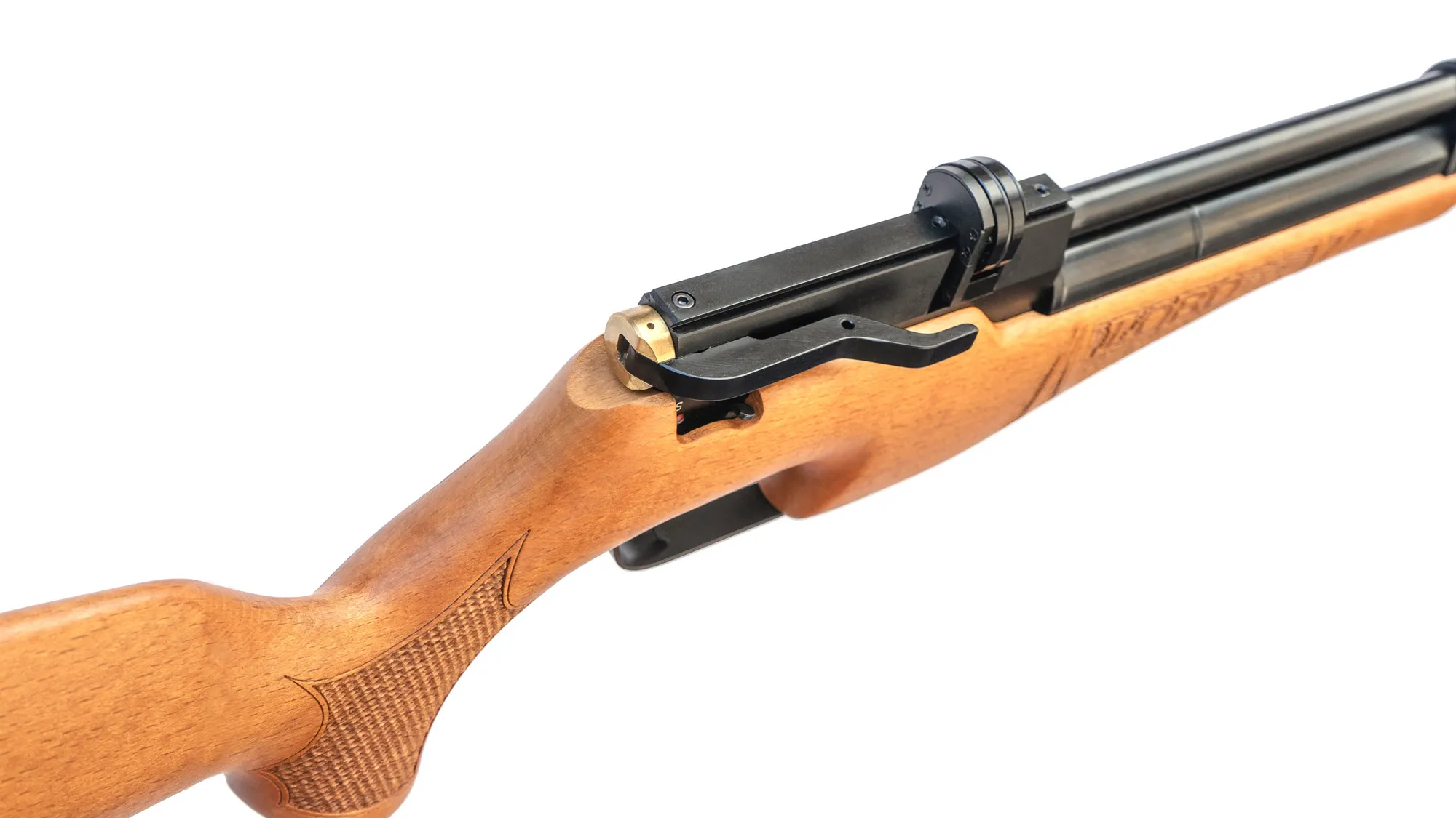 Rifle de aire comprimido de porte clásico con palanca lateral.