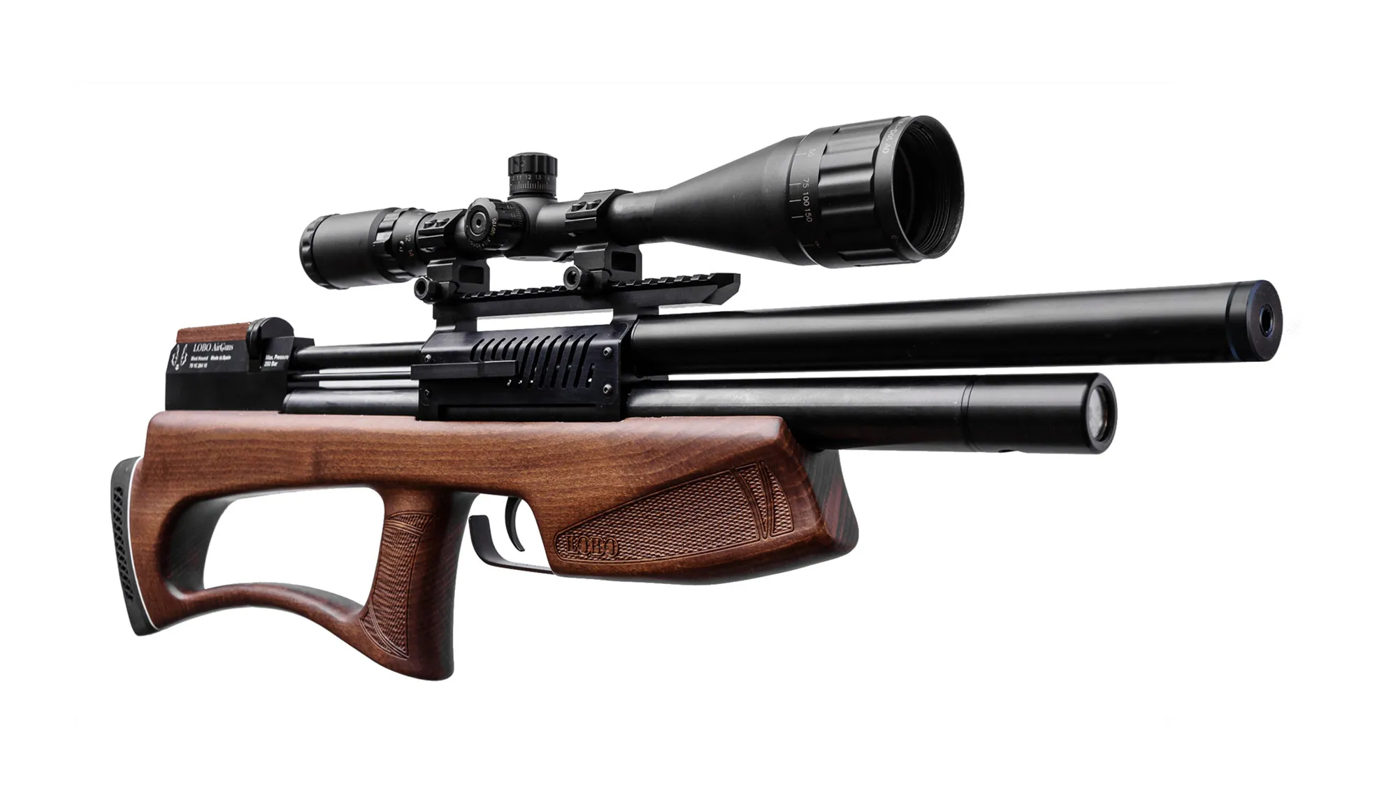Hound, la carabina de aire comprimido estilo Bullpup de LOBO AirGuns. Una carabina PCP de dimensiones reducidas y altas prestaciones. ¡Puede que sea la Bullpup más silenciosa del mercado!