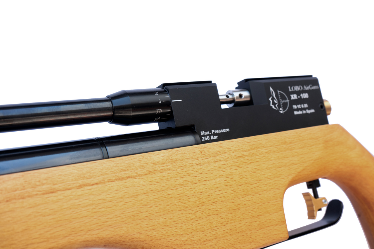 Una carabina nacida para competir. Diseñada con doble regulador de presión LOBO AirGuns.