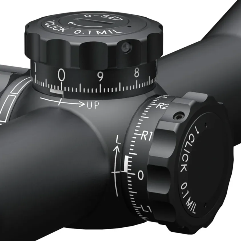 Diales de gran tamaño para elevación, viento y enfoque lateral para un fácil ajuste.